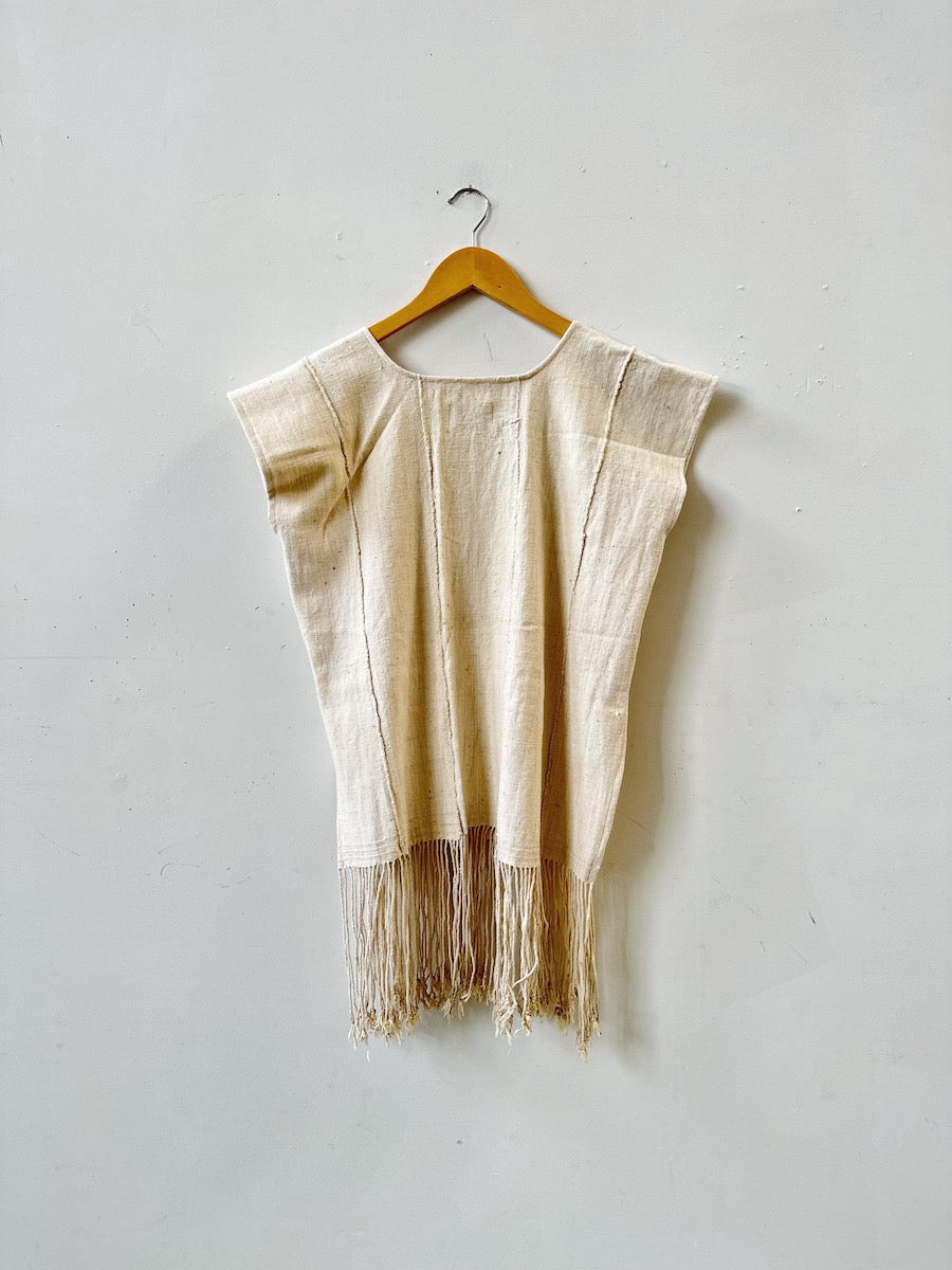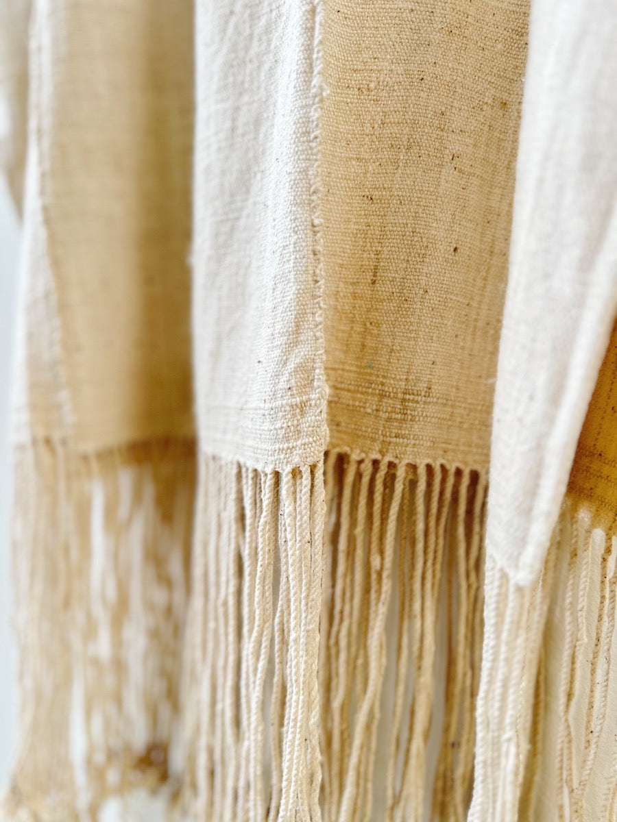 Made with a vintage textile from Burkina Faso, West Africa. This beautiful fabric was handwoven in small strips that were then sewn together to create a sarong like. The whole process took weeks, even longer when you consider that they often grew the cotton! Imperfections, distress patterns, small holes or stains are common features of this beautiful and storied fabric.