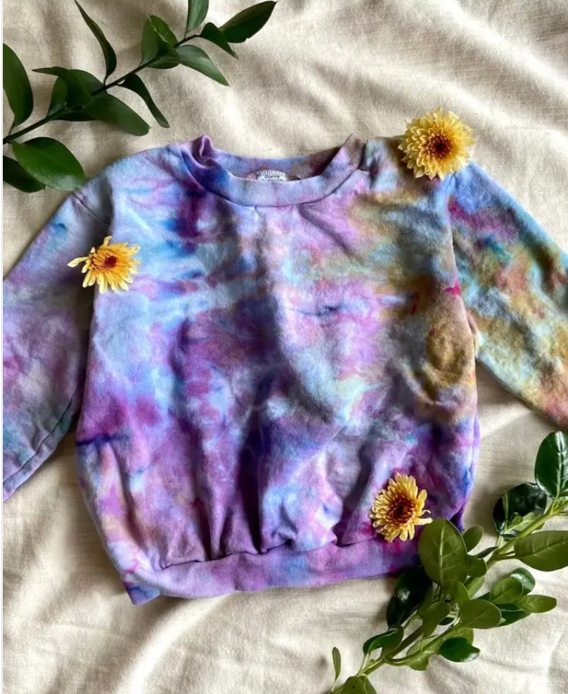 These hand-dyed sweatshirts are perfect for your little one. They're soft, comfy & hide all the spills!