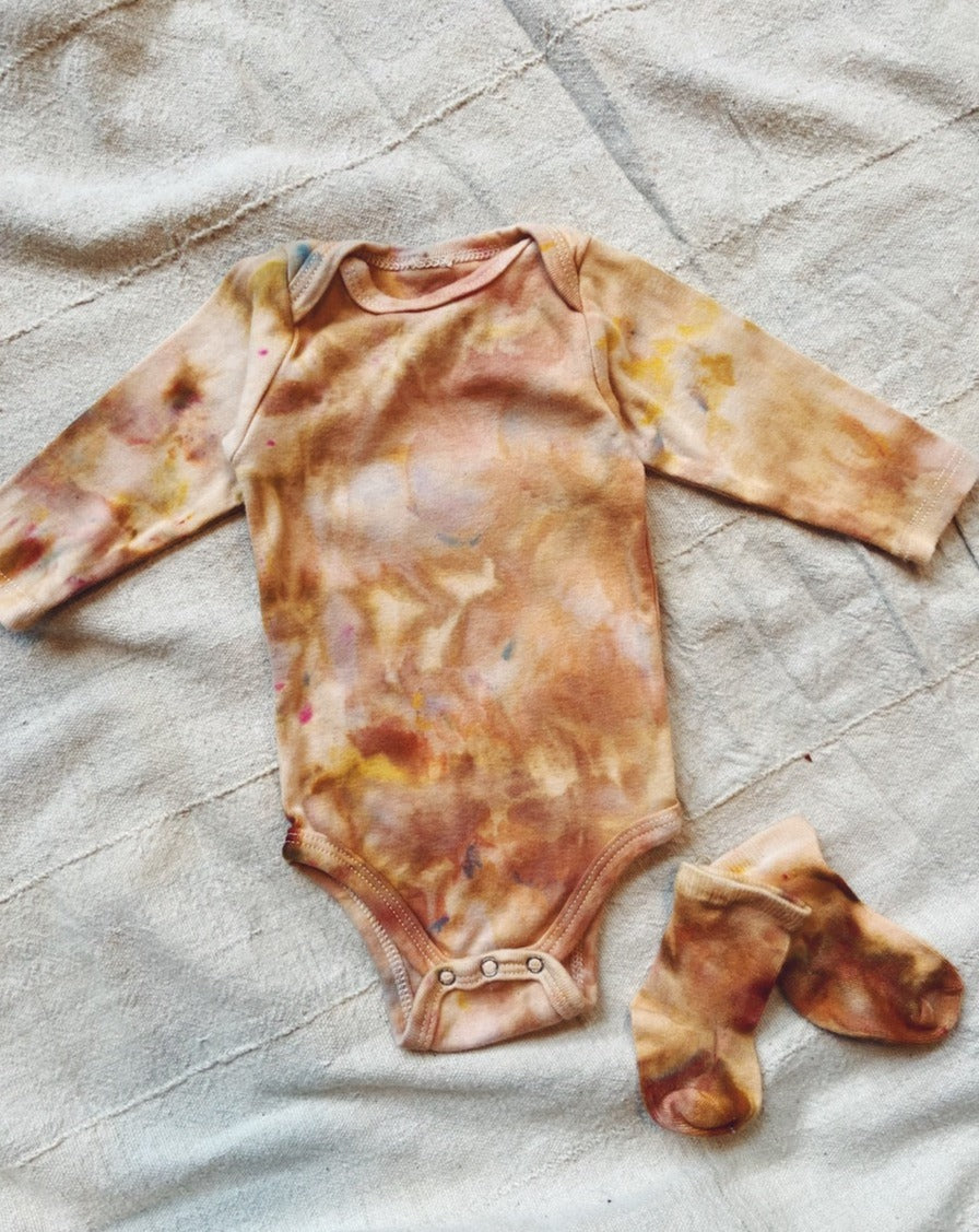These pieces are dyed by hand in our backyard studio. Every element from the temperature that day, to the way the wind is blowing, affects the way they come out. It's a truly magical and collaborative process.