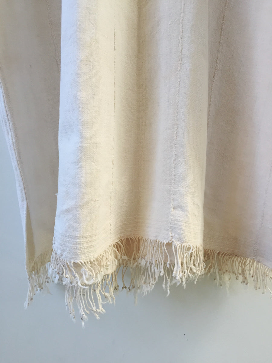 made with vintage textile from Burkina Faso, West Africa. this beautiful textile was handwoven in small strips that were then hand sewn together to create a sarong like cloth before being dyed. the whole process takes weeks. even longer when you consider that they often grew the cotton and indigo! this beautiful vintage fabric is enriched by it's imperfections such as distress patterns, small holes or stains.